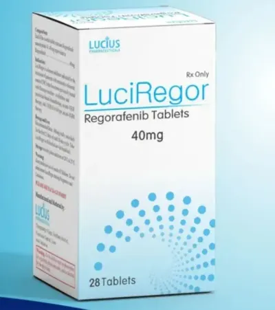 瑞戈非尼阻断了多种蛋白激酶,包括负责血管生成的重要受体(VEGFR1、VEGFR2、VEGFR3、TIE2),参与肿瘤形成的受体(KIT、RET、BRAF、BRAF V600E),以及对调节肿瘤微环境起作用的激酶(PDGFR和FGFR)。通过切断肿瘤的血液供应并直接抑制癌细胞增殖,达到抗癌效果。